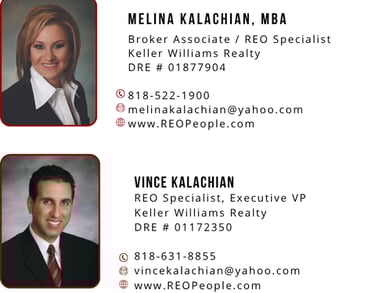 At REOPeople.com, we specialize exclusively in the sale and management of residential REO (Real Estate Owned) assets. Led by seasoned brokers and REO specialists Vince & Melina Kalachian of Kalachian Enterprises, Inc at Keller William Realty, our team brings over 33 years of experience in the real estate industry and a proven track record of delivering results through two major economic downturns.
